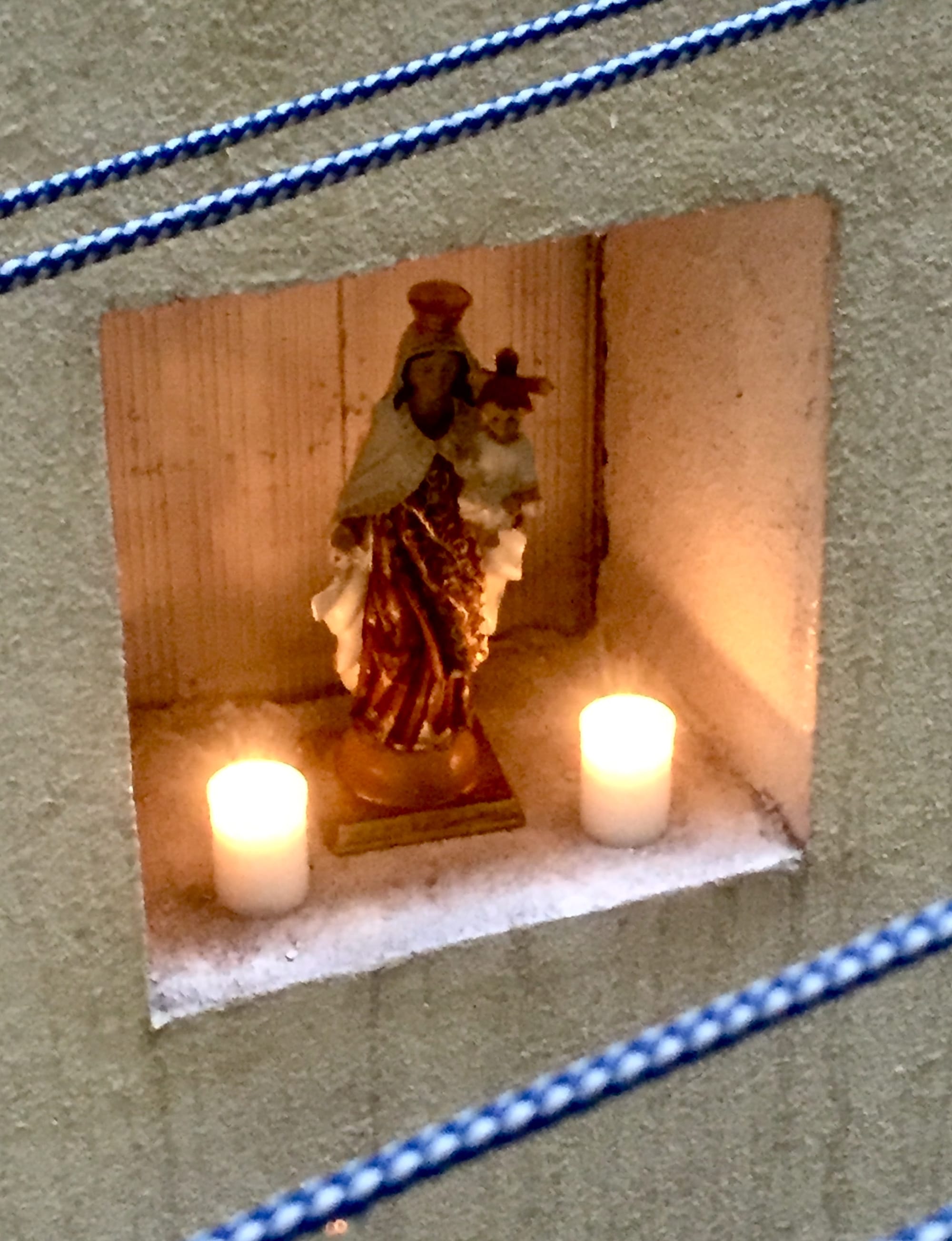 En la pared del patio frente a la cocina, hay un pequeño nicho con la imagen de la Virgen del Carmen. Ahí está por si fuera de tu interés.